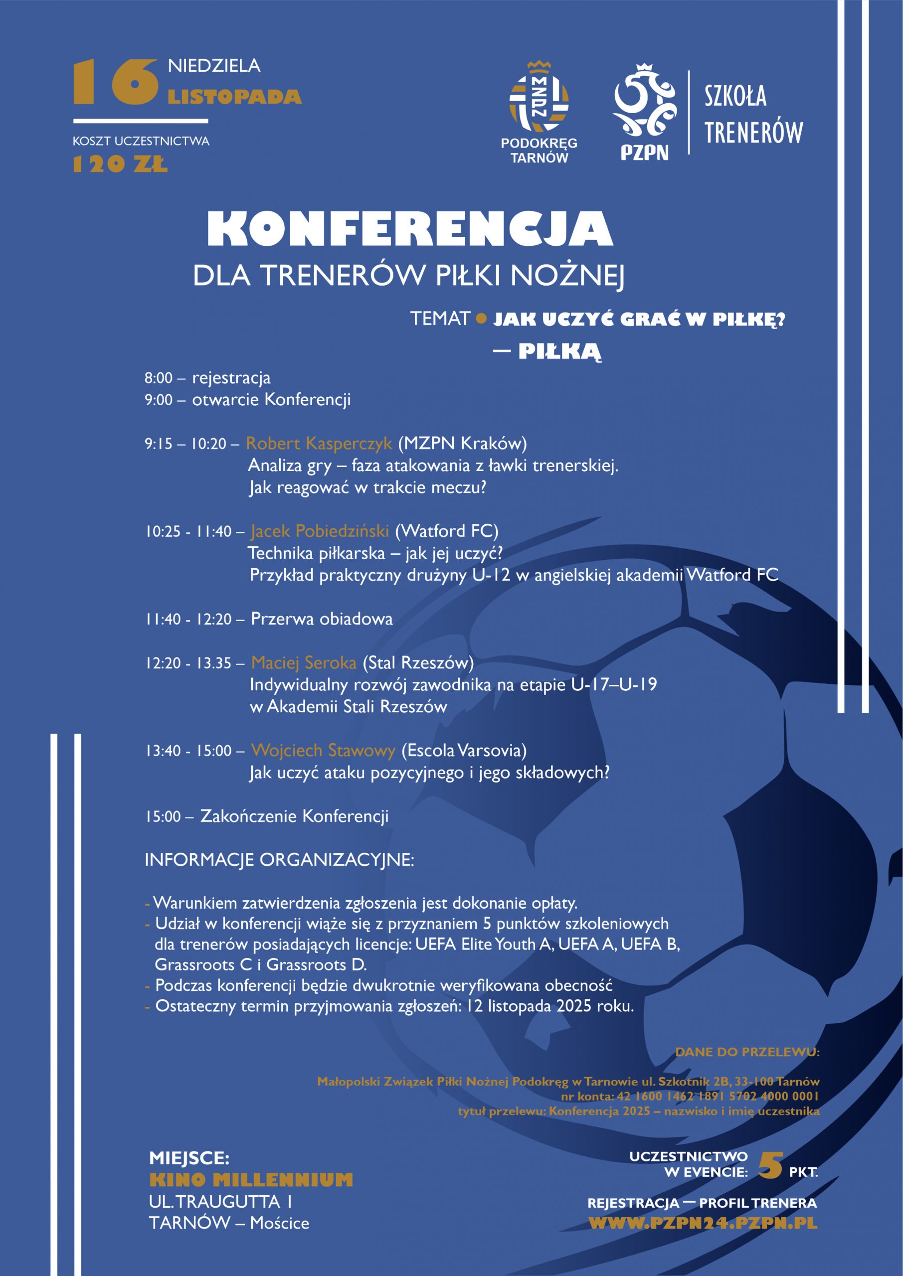 📢 Konferencja szkoleniowa dla trenerów piłki nożnej ⚽ Małopolski Związek Piłki Nożnej – Podokręg w Tarnowie, Wydział Szkolenia MZPN w Krakowie oraz Szkoła Trenerów PZPN […]